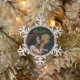 Simply Elegant Wedding Photo White Script Monogram Snowflake Pewter Christmas Ornament