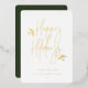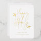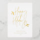 Happy Holidays, simply festive script with foliage accents, real gold foil typography. Single square frame photo with template space for your personal holiday message on back with dark green background.