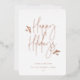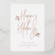 Happy Holidays, simply festive script with foliage accents, real gold foil typography. Single square frame photo with template space for your personal holiday message on back with dark blue background.