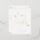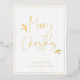 Merry Christmas, simply festive script with foliage accents, real gold foil typography holiday postcard. Template provides space for your personal holiday message and return address on back.