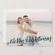 Festive holiday photo card features your favourite horizontal or landscape orientated photo in full bleed, with "Merry Christmas" overlaid in Hunter green hand lettered brush typography.