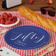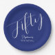 Simply Modern Script Navy Blue 50th Birthday Paper Plate