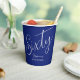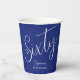 Simply Modern Script Navy Blue 60th Birthday Party Paper Cups