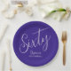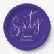 Simply Modern Script Purple 60th Birthday Party Paper Plate