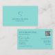 Simply Plain Teal with Monogram and QR Code Modern Business Card
