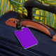 This colourful luggage tag is featured in solid purple. Click "Personalise this Template" to easily change your contact information. Click "Customise" to add a name, photo, logo or other text to the front of the luggage tag.