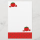 Send a note on this fun garden stationery featuring ripe red tomatoes. A border of red with green dots.