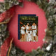 Festive Gold Script, Holiday photo card. Features, solid terracotta orange colour backing with template space for your personal holiday message.