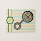 Sweet and charming, this colourful rattle is decorated with circus-inspired pink and green dotted segments and blue and orange latticework on the main rattle, yellow polka dots on the purple handle, and brightly coloured segments like stained glass on the flower shaped grip. Stripes in soft yellow, blue, and pink create a gentle background to contrast the vibrant rattle. Customise the initial in the flower shape to make this gift unique for your little one. Be sure to check out the full Simply Sweet Rattle collection for more great gifts and products for a baby shower or the little one in your life.
