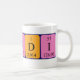 Sindi spelled out as Sulfur Iodine Nitrogen Deuterium Iodine on a mug for the scientist in you.