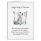 Vintage artwork depicting a scene from the children's nursery rhyme, "Sing a Song of Sixpence" where a blackbird pecks off the nose of the maid who's hanging out the laundry. Card is blank inside for your handwritten message.