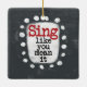A cute typographic music design that says "Sing Like You Mean It". It features black and red text on a white rectangle with funky, playful white dots surrounding it, all on a grey background.