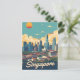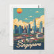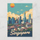 Bring the vibrant energy of Singapore city, into your space with this stunning retro travel poster. Showcasing the city's iconic skyline under a dramatic sunset sky, this illustration features detailed architecture. Designed in a vintage postcard style with warm tones and classic lettering, it's perfect for adding charm to any home, office, or gallery wall. An ideal gift for Singapore city natives, visitors, or lovers of cityscape art.