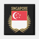 The national flag of Singapore is infused into a faux gold rimmed shield shape, which itself is set upon two branches of faux gold leaves.