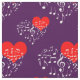 A seamless pattern of heart-shaped musical notes of white colour above the red heart against the violet or purple colour background. Love, music, romantic design "The Singing Heart" for anyone. You can change the tiling pattern, size, and angle of rotation. Just be creative, use this beautiful fabric for any of your projects and be happy!