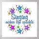 Share your love for singing and how it makes your life more exciting with this colourful design with lots of shiny stars and the words - Singing makes life Sparkle.
