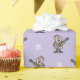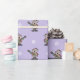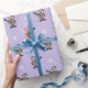A pattern of snowflakes and guitar strumming, song singing Santas decorate this Christmas wrapping paper.