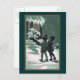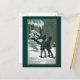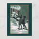 Two children holding sheet music, are singing outside of a snow-covered home under a nighttime sky in this vintage New Year's Day postcard in shades of green from 1919.