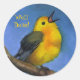My oil pastel painting of a brigh yellow-orange Prothonotary Warbler with its beak wide open as it sings.