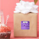 This square sticker bookplate label has a single black silhouette crow standing on black tree branches against a deep purple sky. Customise your text with the templates in the wavy white banner.