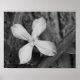 Pretty clematis flower nestled in the spoke of an old wagon wheel done in black and white. Flower photography by Susan.