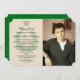 Classic kelly green classic laurel wreath and solid colour on reverse. Customisable with any photo. Traditional formal classical announcement highlighted by a Single letter initial classic monogram. Handsome formal style for any male or female graduate. Modern wheat cream beige graduation announcement is ideal for college level graduates or mature sophisticated high school students. Formal Classic Elegant design with royal laurel wreath, personalised monogram, and traditional fonts. Great option in place of official school announcements. Formal to traditional and classic graduation invite suitable to men or women.