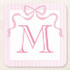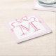 Single Letter Monogram Pink Bow, Custom Ribbon Square Paper Coaster