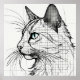 Single Lines Grid Sketch of Black Cat Silhouette Poster