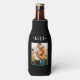 Personalised photo template stubby holder beer holder on black with thin white frame & custom name text.