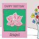 Say Happy Birthday with this pretty card featuring an original drawing of a single pink orchid flower on a green and pink backgrounds. It's simple and pretty. You can personalize the greeting and name on the front and add your own words inside. The artwork is original, and only available from The Art of Being Beth.