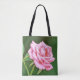 Original photograph of a pretty single pink rose given a graphic illustrative treatment. These bags are great for carrying groceries, books, bible studies, toys, or use as a beach bag or gym bag; anything you need to carry around! These bags are 16” x 16” with a 28” strap. They have a black laminated lining for sturdy support as well. You can also add text as you like (such as someone’s name) on the back of the bag which is in a complimentary colour of pink or leave as is.