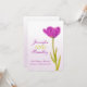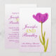 Beautiful single purple tulip on a grey purple modern rustic effect paper floral wedding invitation. Edit this invitation with your own words and wedding details. Simple romantic country style fine art invite. Design and watercolor painting by Sarah Trett.