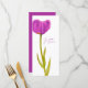 Beautiful single purple tulip watercolor art. Customise with your own four course menu. Ideal for a spring or purple tulip flower wedding or event. Uniquely painted in watercolor and designed by Sarah Trett for www.mylittleedenweddings.com