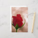 A single red rose in our garden. Still in bud, slowly unfurling its gorgeous crimson petals, waiting to burst into full bloom. A photograph taken of its natural beauty. A single rose, the embodiment of love and romance.