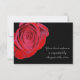 This formal wedding RSVP card features a stunning photograph of a single red rose against a dramatic black background. Your easily customised text is in silver grey. The back of the invitation is white to make it easy for your respondent to mark. All the text is easily customised.