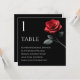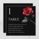 Customise your table-specific seating charts to align perfectly with your wedding vision using this beautiful Single Red Rose design. Elevate your wedding decor with seating charts that not only reflect your style but also makes a lasting impression. Craft a memorable statement with these personalised charts, adding a touch of sophistication to your special day. Ensure your seating arrangement stands out and complements the uniqueness of your wedding celebration.