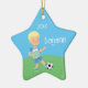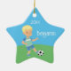 Personalise this cute soccer ornament for the soccer-loving boy in your life! This ornament features a blonde boy kicking a soccer ball on a green field with a blue sky. Also available in other colours for extra customisation.