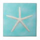 Ceramic tile with a single, white starfish on aqua blue background. Frame to use as a trivet, or decorate a wall.