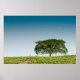 A tree with green foliage standing alone in the tree plantations of Southern Tanzania, Africa. The image is set against a backdrop of blue sky.