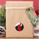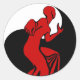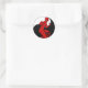 Tai Chi movement Single Whip with Yin Yang symbol sticker. Person is shown in classic single whip position with the left hand in front of the heart (palm facing outward). The right arm is extended backward with the thumb and fingers together. Figure is placed in a circular composition with a yin yang symbol which represents the idea of balance.