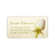 The label background stock is an off white/ivory color. I was able to customize my labels with a dark navy background for free to really make the them pop. I love this feature! The process was so easy and I was able to see each edit as I made them with the label viewer. In person the labels were even more beautiful than how they looked online! I'm so pleased with the way the labels came out. They by far exceeded my expectations by how sturdy they are! My mailman even bent the mailing envelope to place in my mailbox and because of the construction of the labels and the excellent packaging by Zazzle there was no damage to my labels and they even arrived sooner than the expected shipping date! The quality of these labels is exquisite! The colors were so much brighter, bolder, and more vivid in person. The image quality was also way above par. You can really see the detail of the flower in the label more so than with drug store or even craft store labels. When ordering these labels I wanted them to stand apart on my wedding invitations and from every detail. From the stamp to the address label to the envelope, I wanted my guests to see the detail. Thank you Zazzle! You really added that extra touch to making my invitations that much more special!