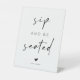 Set a welcoming tone with this Sip and Be Seated sign, perfect for inviting guests to enjoy a drink and find their table at weddings, bridal showers, or special celebrations. Stylish and easy to personalize to match your event decor. Customizable colors.