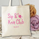 Sip And Knit Club Knitting Lovers Custom Tote Bag
