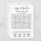 wedding word search invitation, custom puzzle wedding invite, sip and search invitation, bridal shower game invite, fun wedding invitation design, personalised wedding puzzle card, black and white word search, interactive wedding rsvp insert, modern puzzle wedding stationery, custom word search invitation