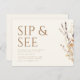 This beautiful fall invitation showcases the phrase "Sip and See" in large, elegant script across the top, setting a welcoming and festive tone. Below, you'll find space for all the essential party details, such as date, time, and location, ensuring guests have all the information they need. On the right side, soft watercolor fall leaves and flowers add a touch of autumnal charm and warmth. This thoughtfully designed invitation captures the spirit of togetherness and gratitude, making it the perfect choice for inviting loved ones to meet your new baby.
