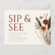 This beautiful fall invitation showcases the phrase "Sip and See" in large, elegant script across the top, setting a welcoming and festive tone. Below, you'll find space for all the essential party details, such as date, time, and location, ensuring guests have all the information they need. On the right side, soft watercolor fall leaves and flowers add a touch of autumnal charm and warmth. This thoughtfully designed invitation captures the spirit of togetherness and gratitude, making it the perfect choice for inviting loved ones to meet your new baby.