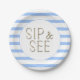 Sip and See Blue White Striped Baby Shower Paper Plate