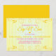 Sip and See Modern Yellow Flourish Stripes Invite. A perfect modern invitation to show your friends and family your newest addition to your family. Yellow colour showed here and can be used for showcasing your new daughter. This sip and see invitation features yellow and white striped background with fancy flourish elements on top and bottom.