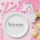 sip sip hooray birthday party paper plate. With modern graphic gold effect dots and bold graphic text this birthday party design is sure to suit men and women of all ages looking for a classy party theme.