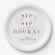 Sip Sip Hooray Black White Pink Engagement Party Paper Plate